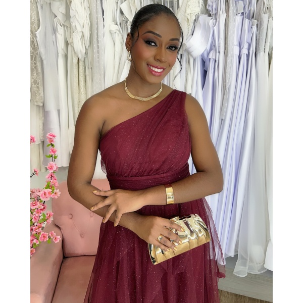 👗Vestido longo marsala ombro só saia recortes em tule sem brilho. Lindo demais né?