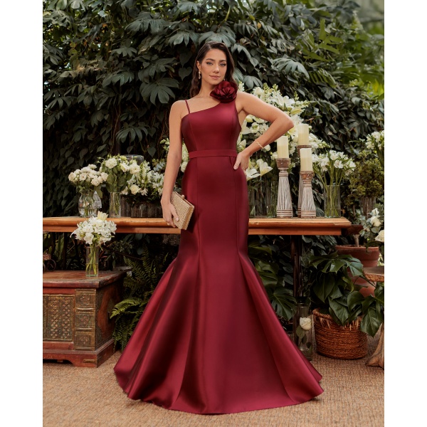 👗vestido longo marsala semi sereia ombro só com flor em zibeline. Maravilhoso!