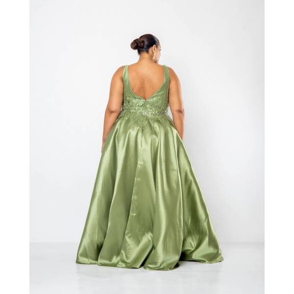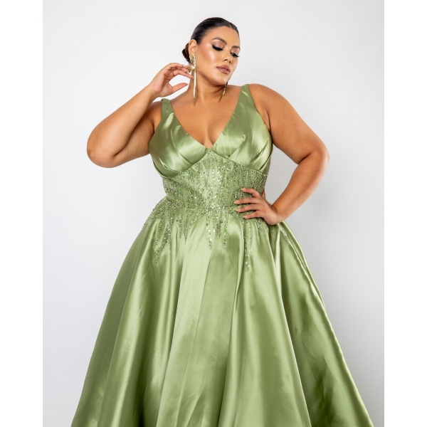 👗Vestido longo bordado verde oliva cintura pedraria saia evasê em zibeline. O vestido dos sonhos!
