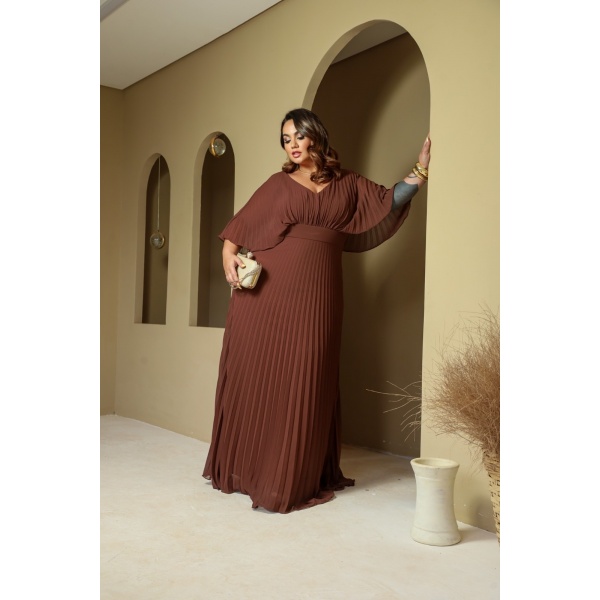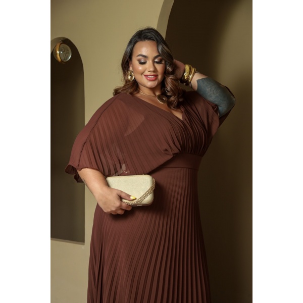 👗Vestido longo marrom todo plissado em crepe. Um arraso!