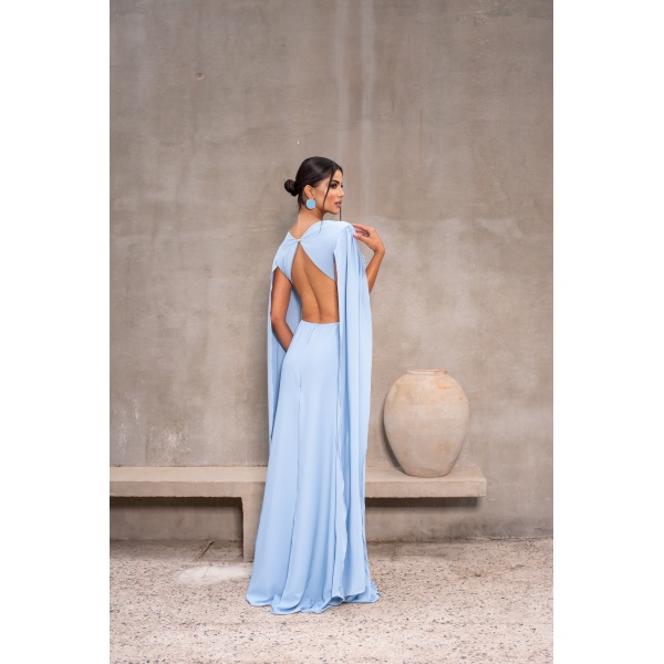 👗Vestido longo azul serenity cap dress costas abertas em crepe. Um arraso!