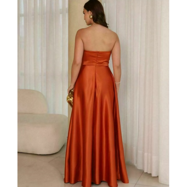 👗Vestido longo terracota tomara que caia pala busto em crepe acetinado. maravilhoso