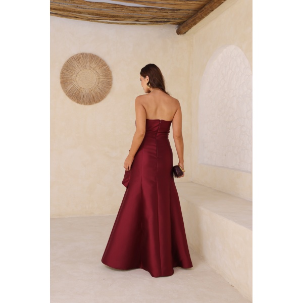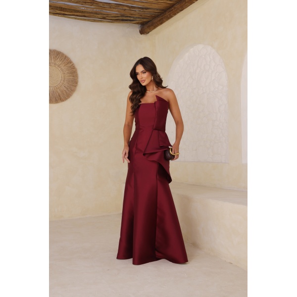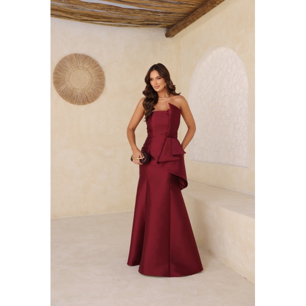 👗Vestido longo marsala tomara que caia pala cintura em zibeline. Um arraso!