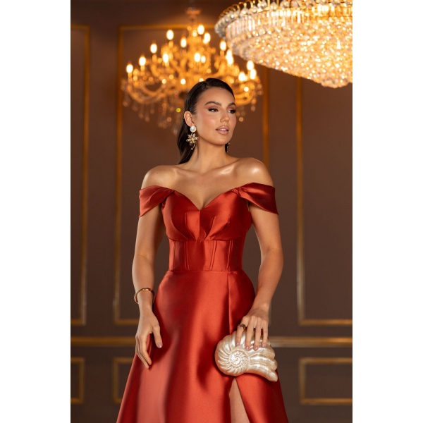 👗Vestido terracota ombro a ombro em zibeline, maravilhoso!