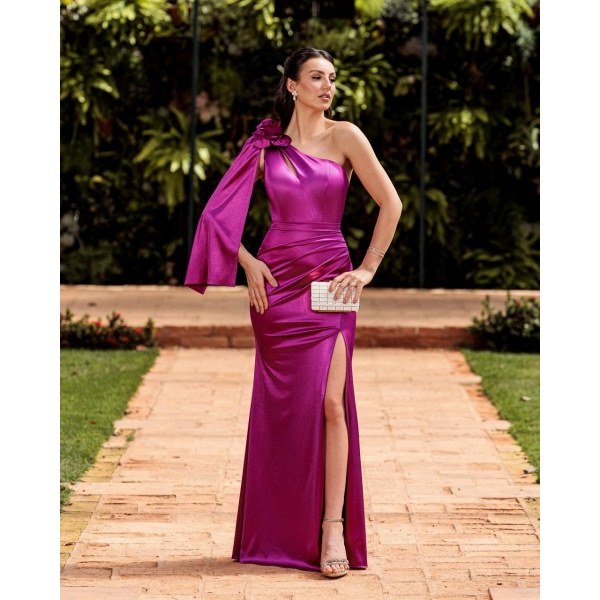 VESTIDO FUCSIA SEMI SEREIA UM OMBRO SO DETALHE FLOR MANGA CAPA E FENDA Departamento: VESTIDOS LONGOS Categoria: COR FÚCSIA Código: PH1232 R$ 569,00 Disponibilidade Produto Disponível Selecione o Tamanho