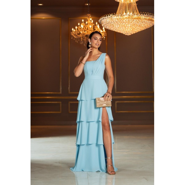 👗Vestido longo azul serenity ombro só saia três marias e fenda em musseline. Lindissimo!