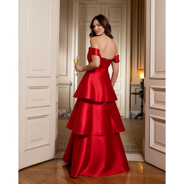 👗Vestido longo azul royal alça larga saia 2 babados em zibeline. Maravilhoso!