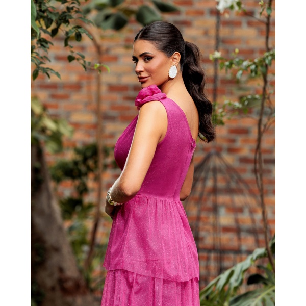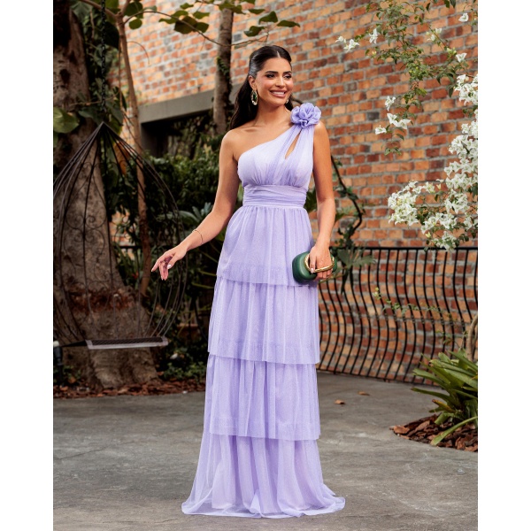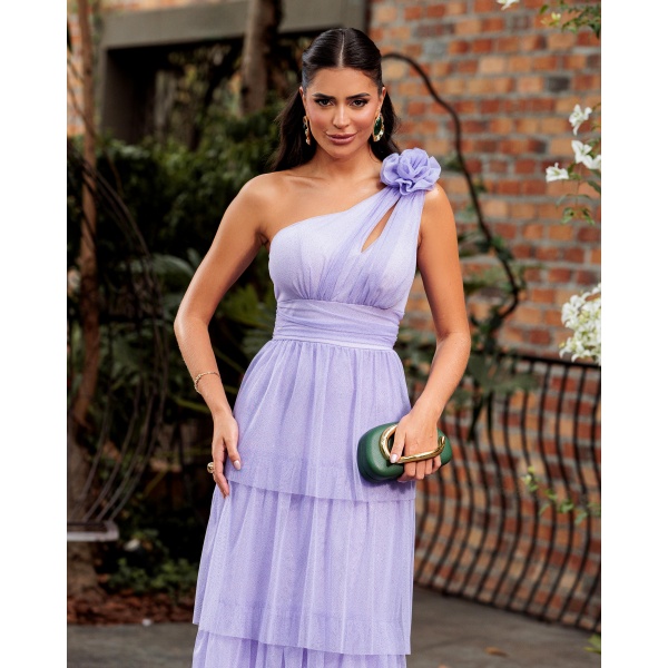 👗Vestido longo lilás ombro só flor três marias busto vazado lurex. Lindo demais né?