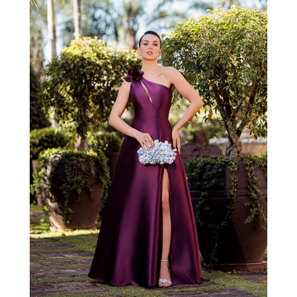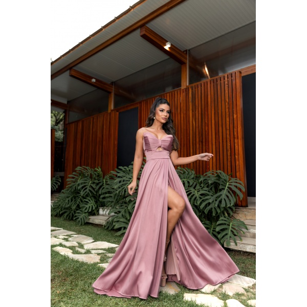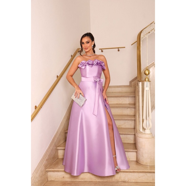 VESTIDO LILÁS DE CETIM
