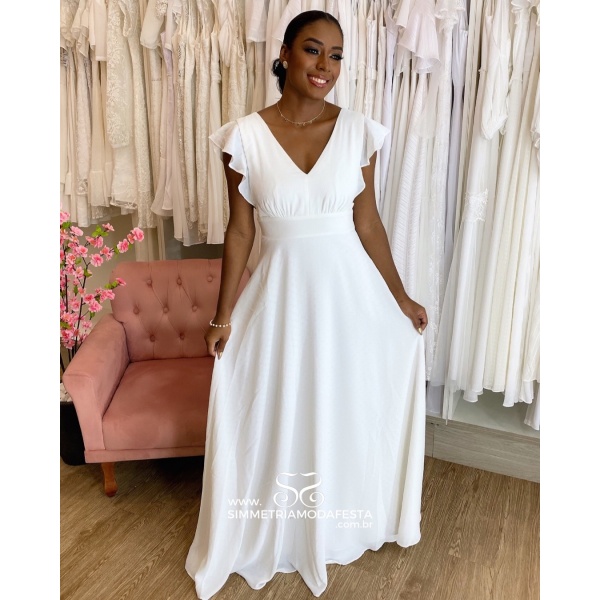 Vestido longo branco decote V e manga japonesa. Lindo demais né?