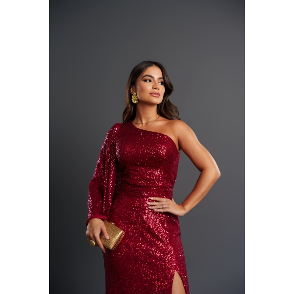 👗Vestido marsala ombro só cap dress em paetês. Garanta já o seu!