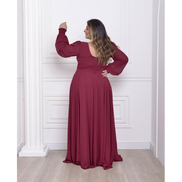 👗Vestido plus size fúcsia manga longa com faixa na cintura e elástico no punho em crepe. Um arraso!