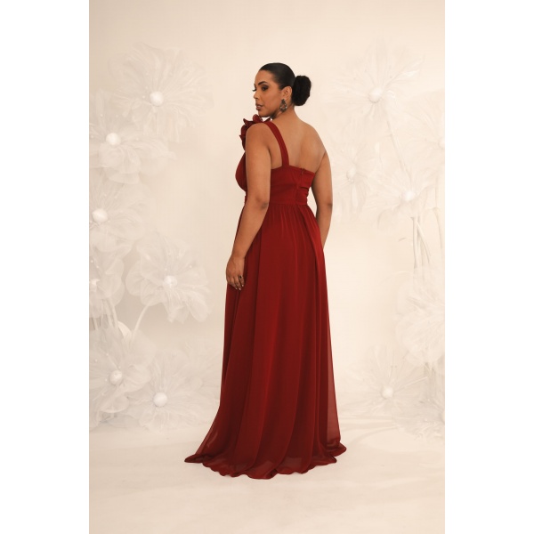 👗Vestido plus size marsala ombro só flor alça em crepe. Lindo demais né?