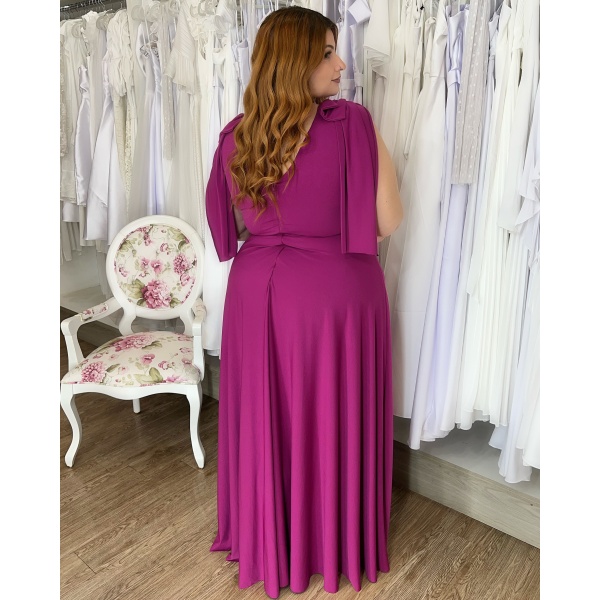 👗Vestido plus size fúcsia decote V com detalhe no ombro em crepe de malha. Lindo demais né?