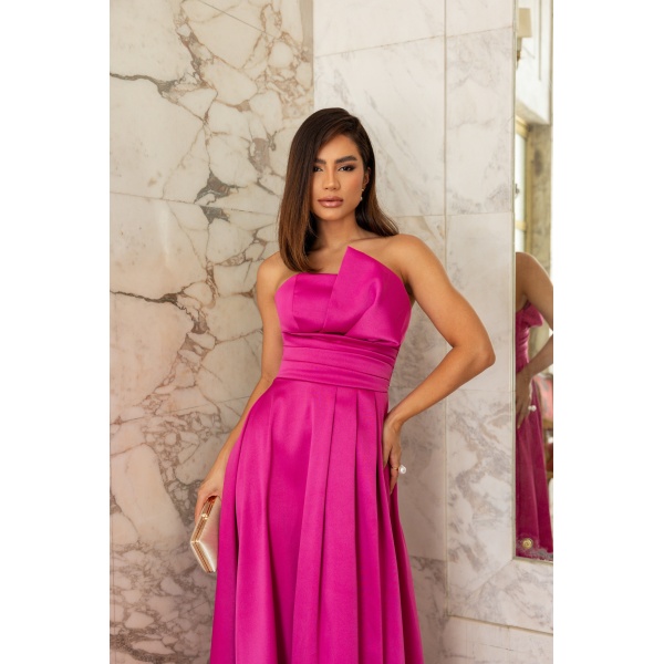 👗Vestido longo pink tomara que caia faixa cintura fenda em crepe prada. Um arraso!