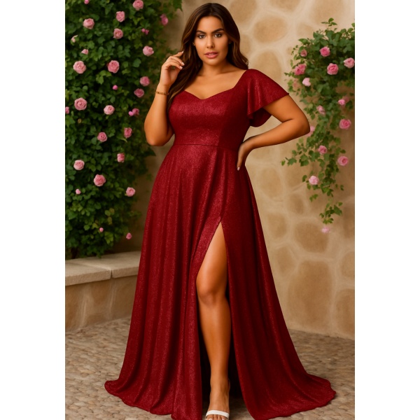 👗Vestido plus size marsala manga curta em lurex. Lindo demais né?