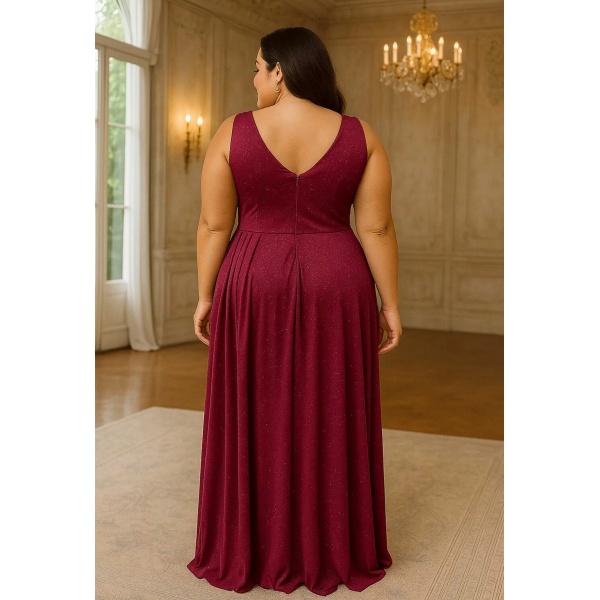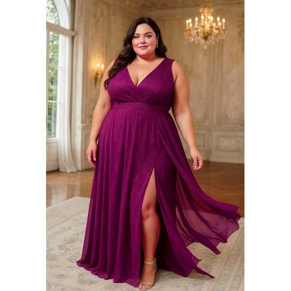 👗Vestido plus size fúcsia alça larga fenda em lurex. Lindo demais né?