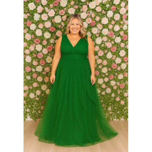 👗Vestido plus size verde esmeralda saia camadas em tule. Lindo demais né?