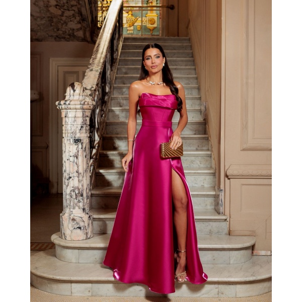 👗Vestido longo pink tomara que caia pala busto e fenda em zibeline gloss. maravilhoso