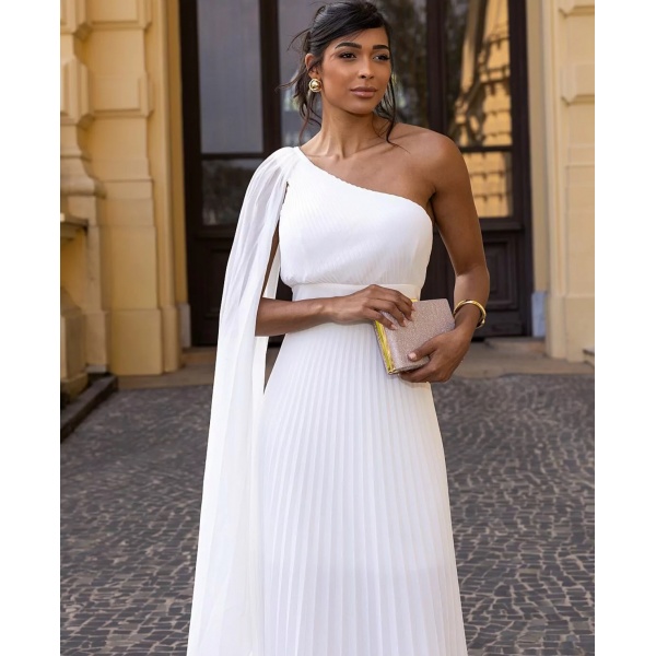 VESTIDO PLUS SIZE BRANCO OMBRO SÓ COM MANGA CAPA SAIA PLISSADA EM CREPE Departamento: VESTIDOS NOIVA Categoria: COR BRANCO Código: Y5024 R$ 539,00 Disponibilidade Produto Disponível Selecione o Tamanho