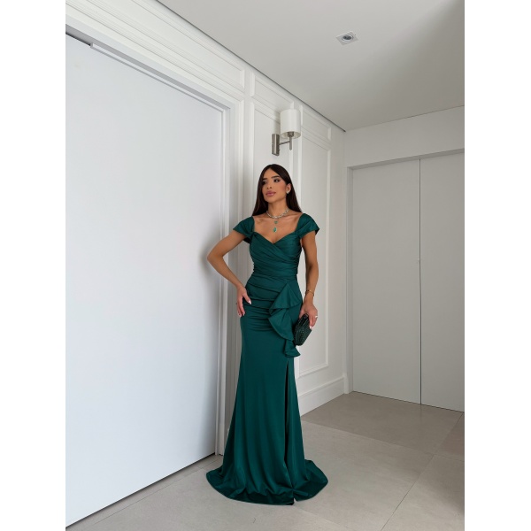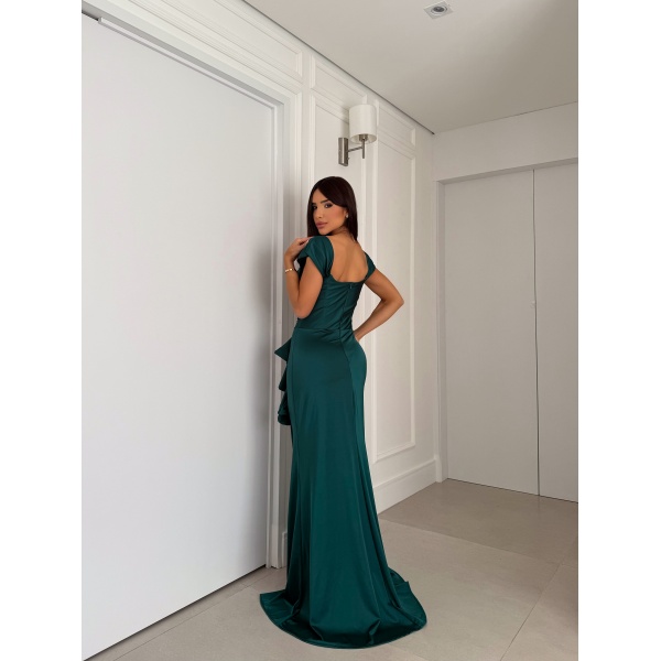 👗Vestido longo verde esmeralda semi sereia ombro a ombro babado saia e fenda em trilobal. Um arraso!
