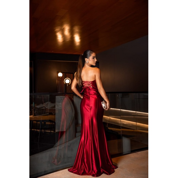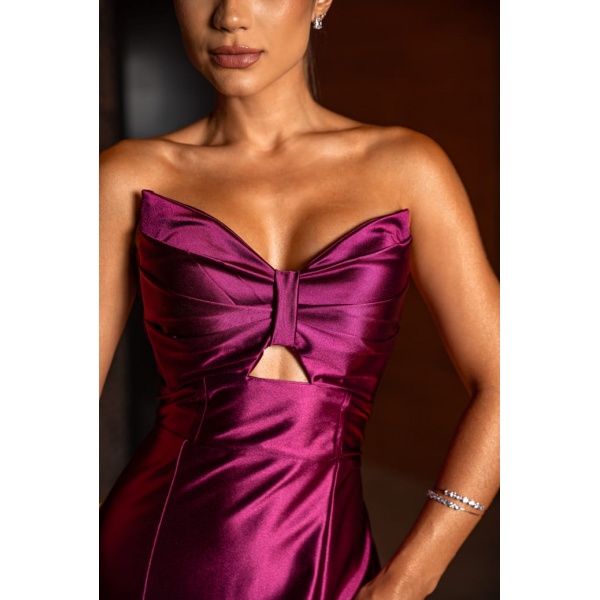 👗Vestido longo fúcsia semi sereia tomara que caia laço busto em crepe prada. Um arraso!