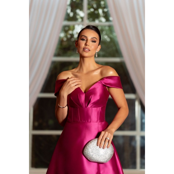 👗Vestido fucsia ombro a ombro em zibeline, maravilhoso!