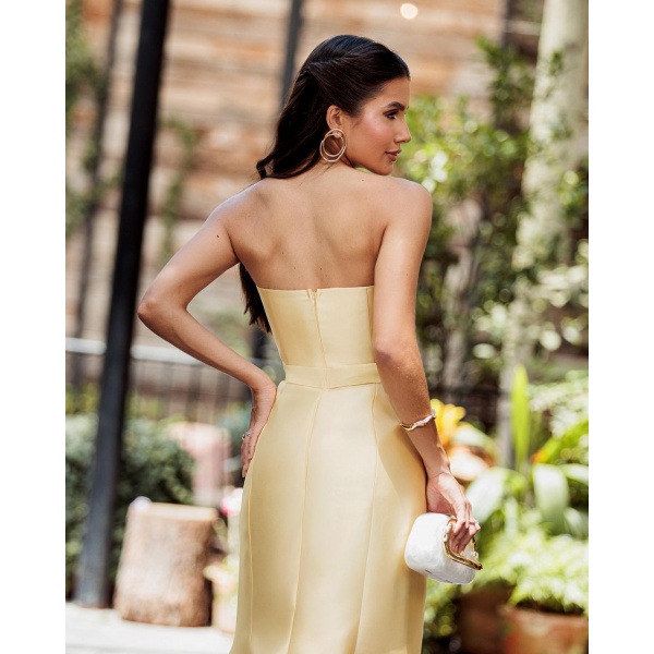 👗Vestido amarelo tomara que caia em zibeline com pala na cintura, maravilhoso!