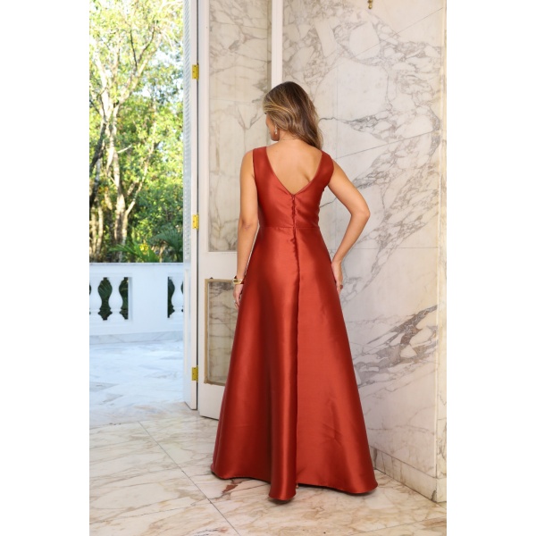 👗Vestido longo terracota alça larga pala cintura em zibeline. Lindo demais né?