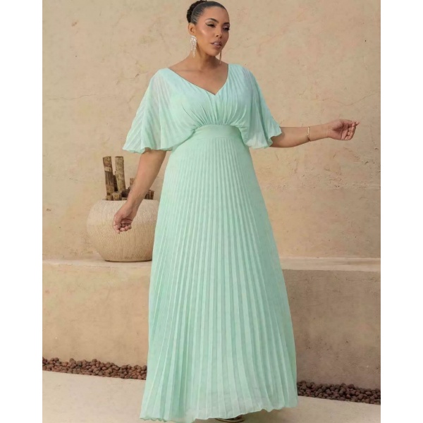 👗Vestido longo verde menta inteiro plissado em crepe. Lindo demais né?