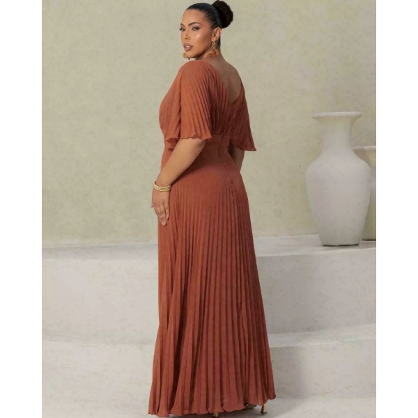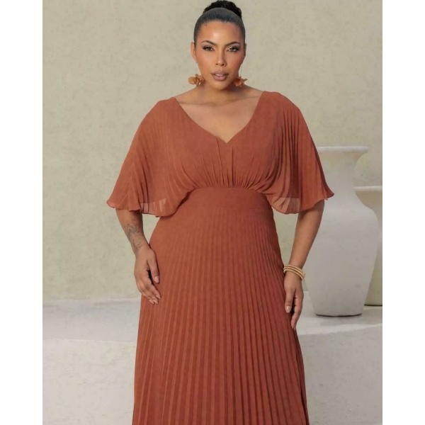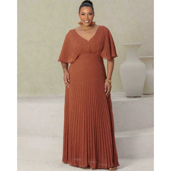 👗Vestido longo terracota inteiro plissado em crepe. Lindo demais né?