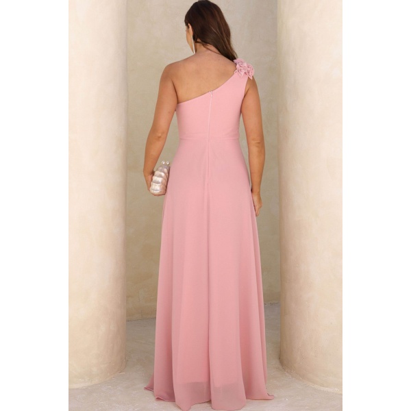 👗Vestido longo rose em crepe um ombro so com aplicacao. Um arraso!