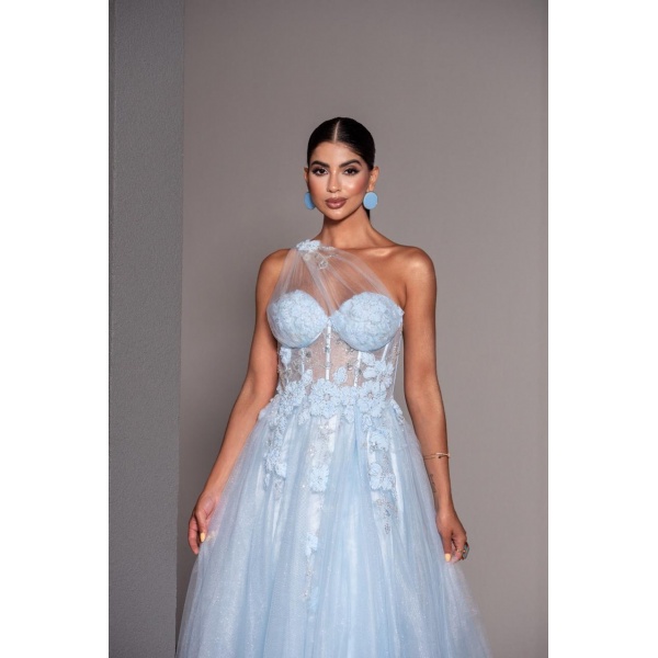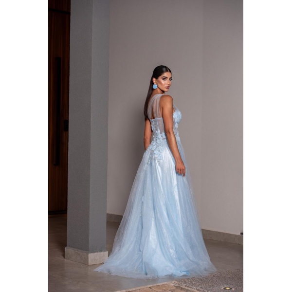 👗Vestido longo bordado azul serenity um ombro so com saia em tule e fenda. O vestido dos sonhos!