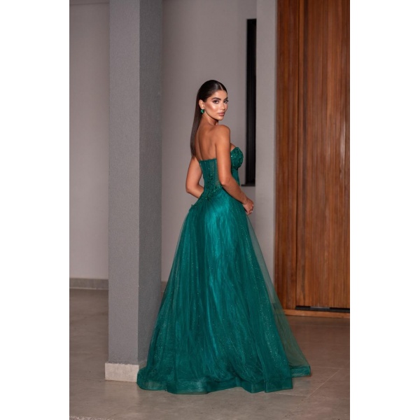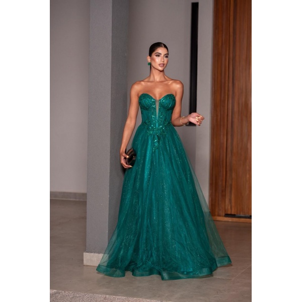 👗Vestido longo bordado verde esmeralda tomara que caia com saia em tule de brilho. O vestido dos sonhos!