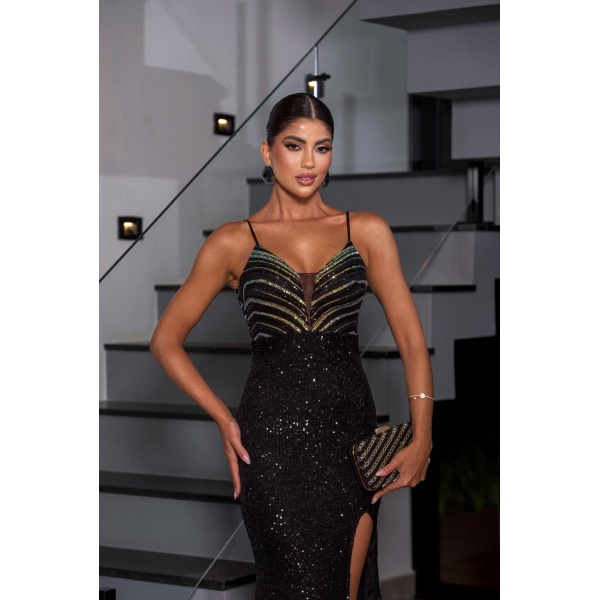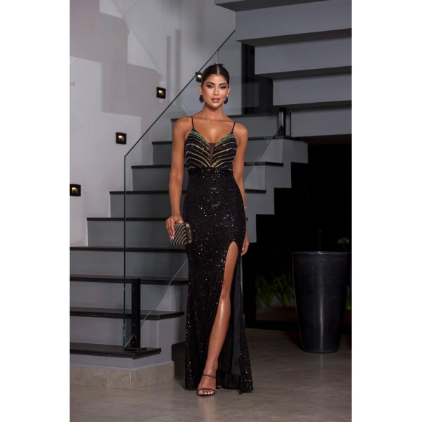 👗Vestido longo bordado preto alcinha sereia paetê. O vestido dos sonhos!