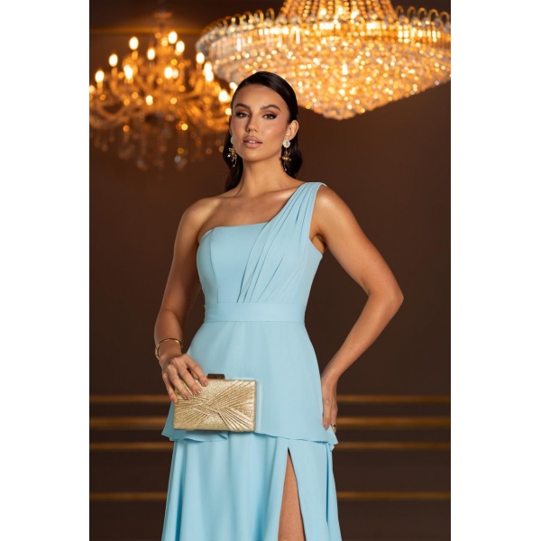 👗Vestido longo azul serenity ombro só saia três marias e fenda em musseline. Lindissimo!