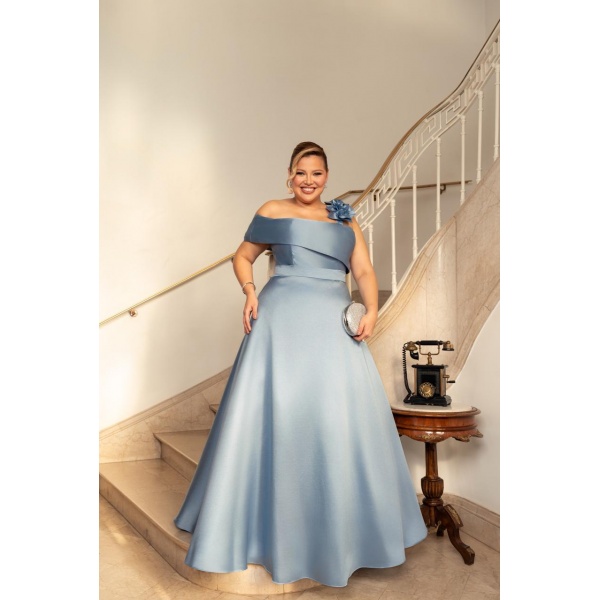 👗Vestido plus size azul serenity alça um lado com aplicação do outro em zibeline. Lindo demais né?
