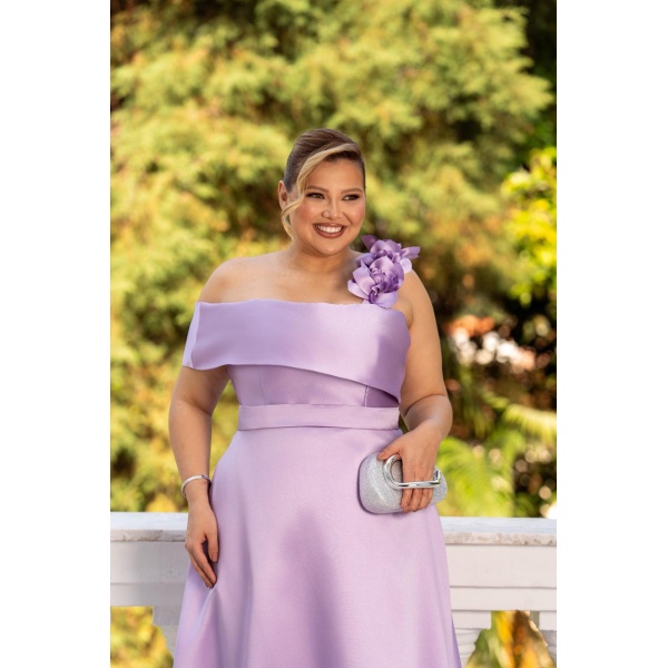 👗Vestido plus size lilás alça um lado com aplicação do outro em zibeline. Lindo demais né?