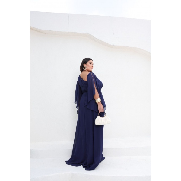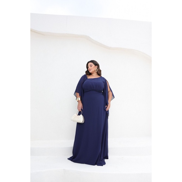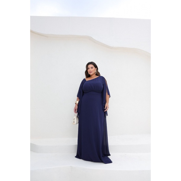 👗Vestido longo azul marinho manga 3/4 aberta em crepe. Um arraso!